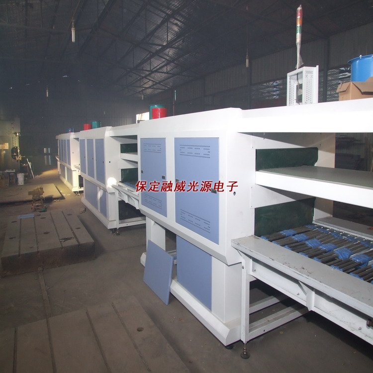 带式双层贴底烘干机适用于各种胶粘类的配底成型生产工艺流程。能完成各工序的传送以及将刷胶、烘干、高温定型、冷冻定型等加工工艺有机的组合在一起进行连续作业。传动速度和温度根据不同需要可无级调速,采用远红外加热,热风对流式烘室,加热均匀,速度快,效果好。采用硅酸铝纤维作为箱体的保温材料,保温效果好。远红外灯管加热,定型箱采用电脑制冷控制器,实现智能化控制,安全,稳定,简单,方便,另在刷胶部位设立了排毒装置(据用记需要),保障了操作员工的身心健康,实现了文明生产,采用的热、冷两种定型方法,热定型不仅能使鞋抱楦,而且能使胶粘剂的固化。
